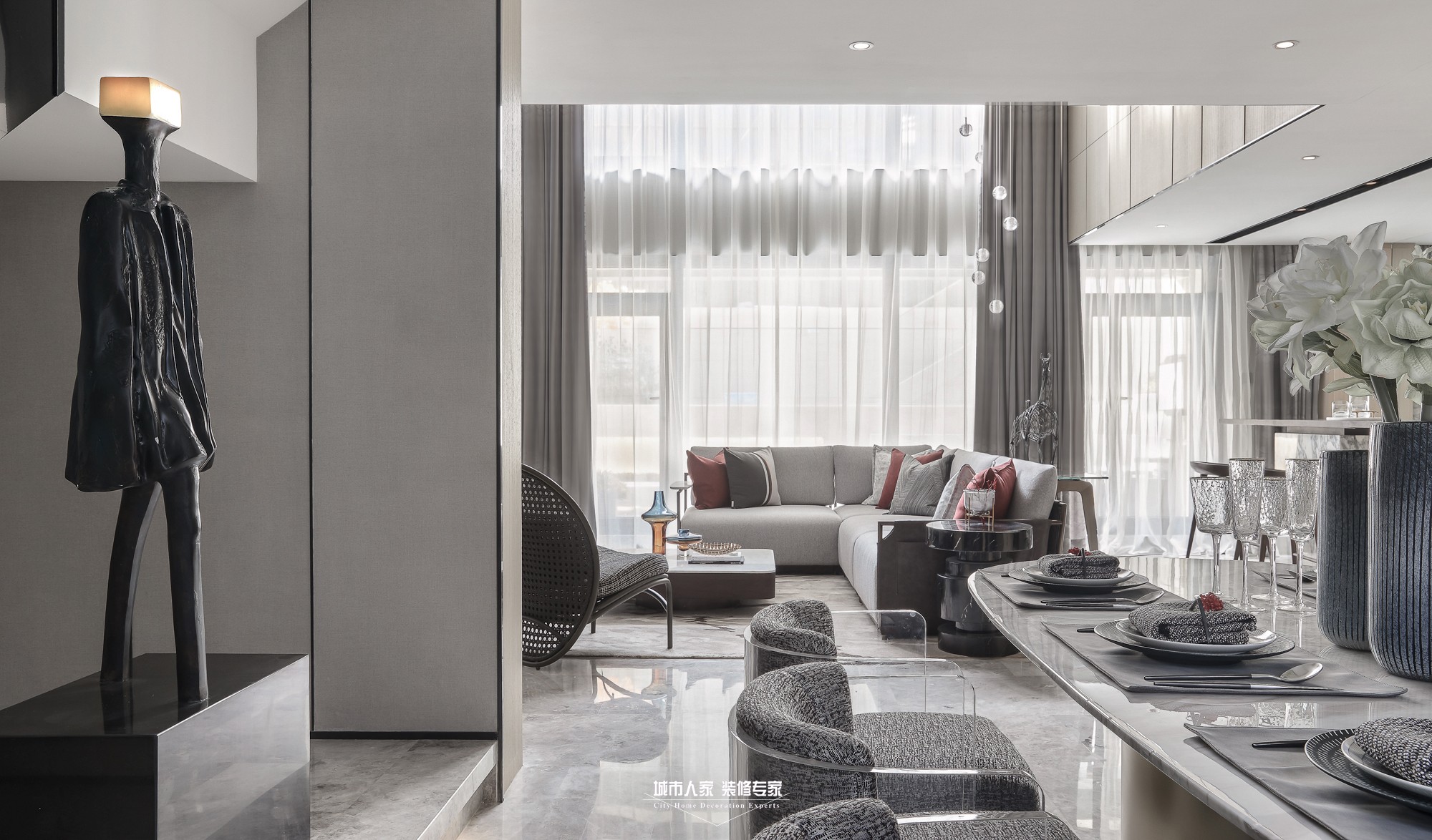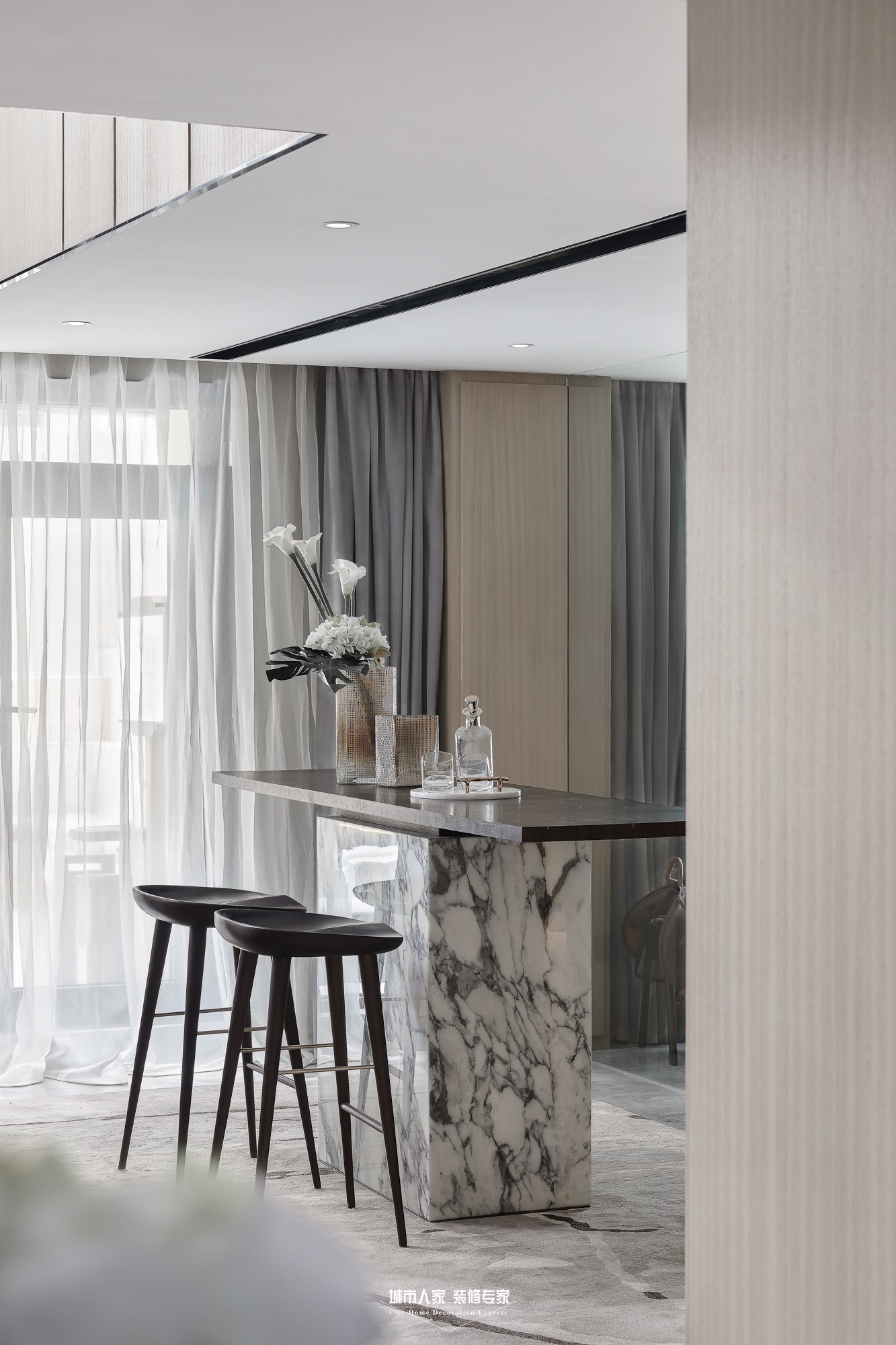 設(shè)計(jì)團(tuán)隊(duì)結(jié)合空間自身特征,秉持大道至簡(jiǎn)的哲學(xué),寧神靜氣沉密神采,重現(xiàn)詮釋當(dāng)代簡(jiǎn)約風(fēng)格。倡導(dǎo)純粹、自然、極簡(jiǎn),堅(jiān)持給空間留白,給藝術(shù)留空間。